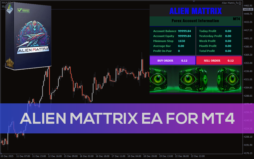 Alien Mattrix EA for MT4 is an automated trading robot focused on trend detection, controlled risk, and stable long-term performance.