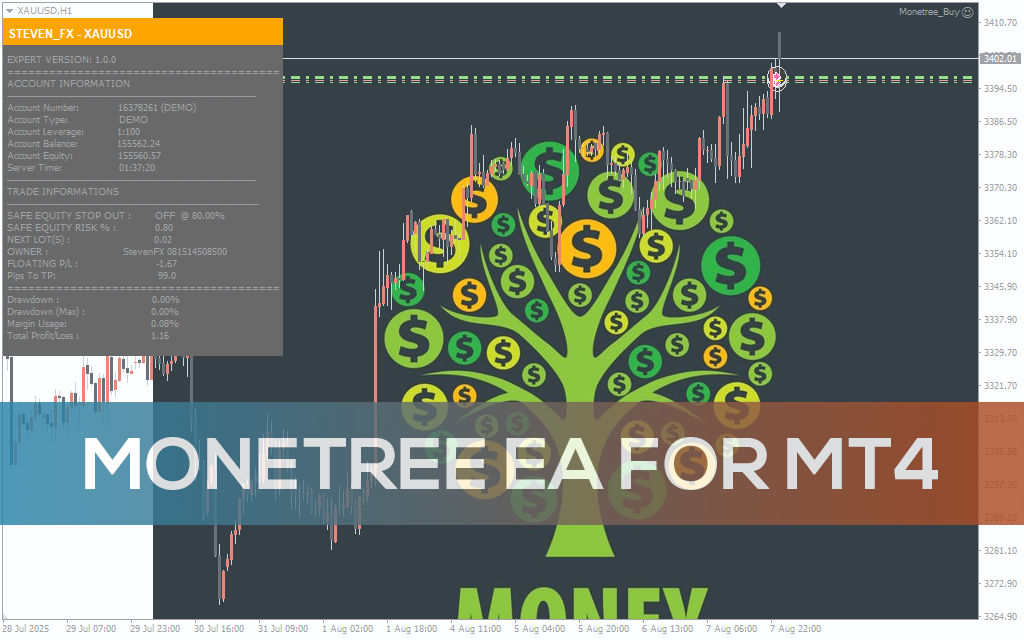 Monetree EA for MT4 is a fully automated gold trading system with safe equity stop, smart risk management, and consistent profit growth.
