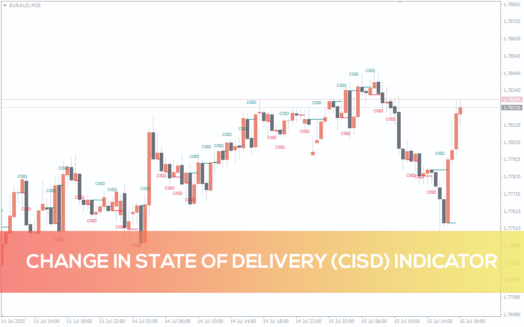 Identify bullish and bearish delivery shifts on any chart with the Change in State of Delivery (CISD) Indicator MT4 by LuxAlgo.