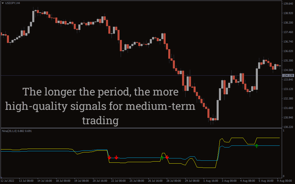 Forex BUY/SELL signals from the best Nina Indicator for MT4. Find the trend’s direction with the help of arrows.