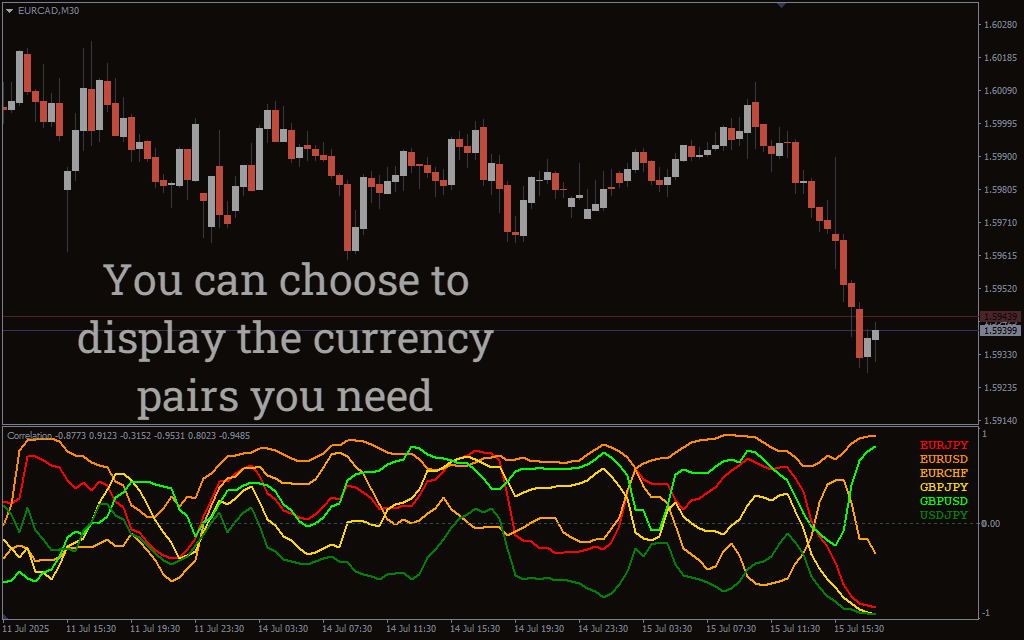 Analyze and visualize historical correlation between currency pairs in real time with the Historical Correlation Indicator for MT4.